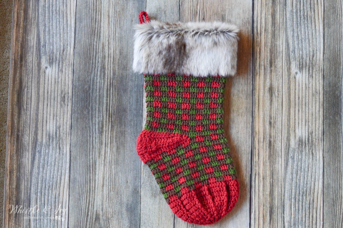 Chunky Plaid-Topped Stocking
