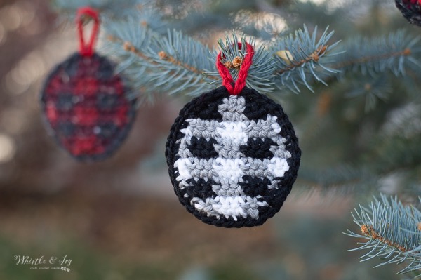 These darling plaid ornaments have a flat, round shape, adding plaid variety to your tree! Make the plaid baubles too! This pattern is available in the Endless Bundle! Learn more here.
