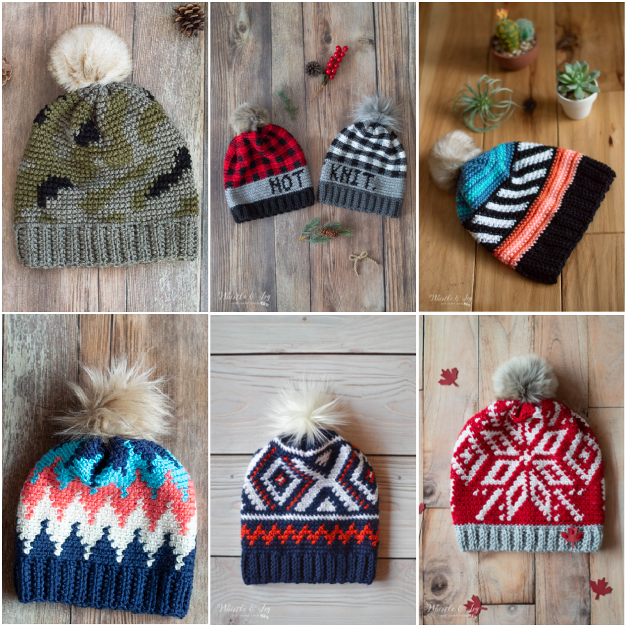 Calling all color work lovers! This collection of hat graphs keeps growing with new, modern ideas. All hats use the same basic brim, then you can get creative by adding a new color work graph! Patterns are sized for adults.