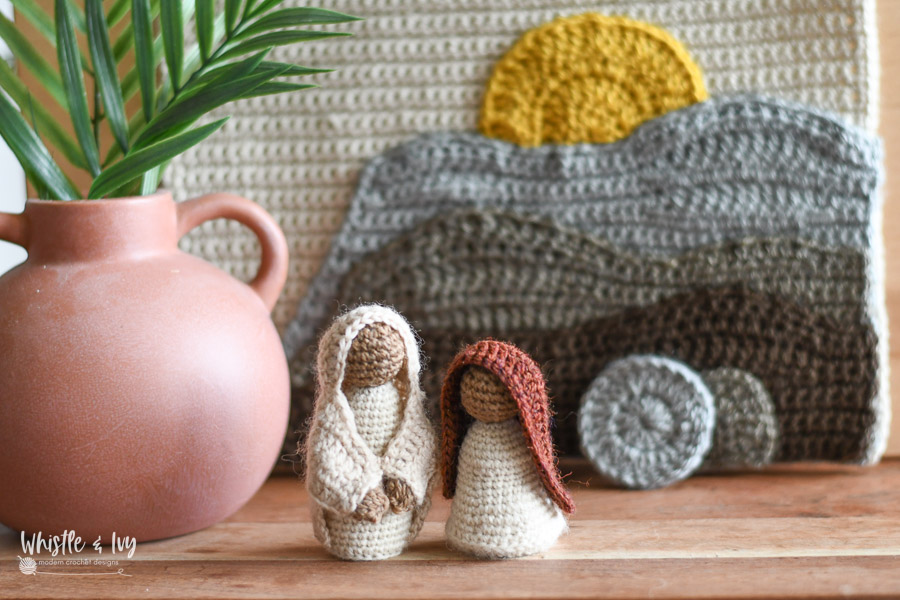 This lovely and charming crochet resurrection Easter set can bring extra meaning to your Easter celebrations this year. This set includes a lovely mountain tapestry, with Jesus and Mary in the foreground. This pattern is perfect for advanced beginners, and uses mostly beginner concepts, with photos to help with the few advanced techniques.